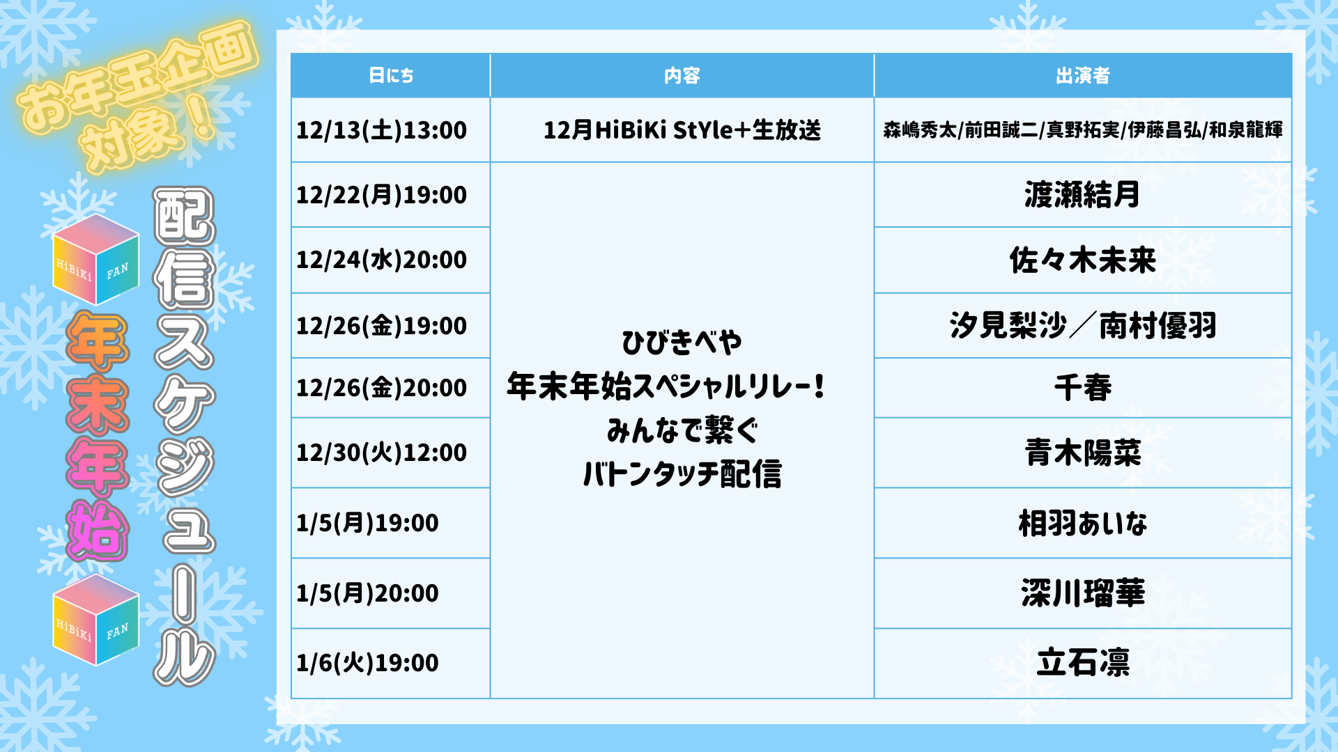 年末年始に行われるHiBiKi StYle+の生配信内で、【12月のあいことば】【1月のあいことば】を発表いたします。